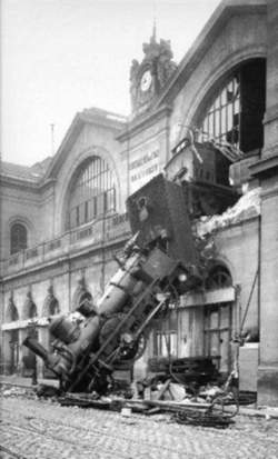 Почти фантастическая история с аварией пассажирского поезда произошла на вокзале Мон-парнас в Париже 23 октября 1895 г.