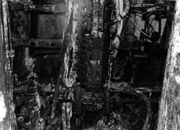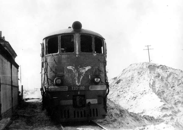 Тепловоз ТЭ3-102 списан в 1985 году. Поврежден в результате пожара 25.03.1984